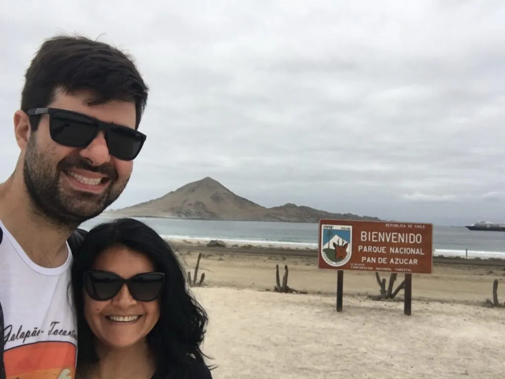 Na manhã seguinte, pegamos a estrada em direção ao Parque Nacional Pan de Azúcar , uma região única que fica entre o Deserto do Atacama e o Oceano Pacífico . A imensidão do deserto ao lado do oceano infinito cria uma sensação de isolamento e liberdade ao mesmo tempo. O contraste entre a areia dourada e o azul profundo do mar é hipnotizante.
