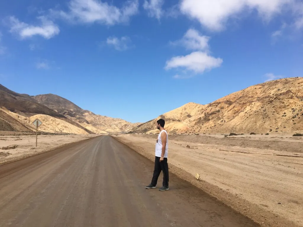 Continuamos nossa jornada, agora atravessando o Deserto do Atacama , costeando a Quebrada Chañaral , uma montanha imponente que surge em meio ao ambiente árido. Apesar do clima seco e quase inóspito, a beleza do deserto é indescritível. O céu maravilhosamente azul forma um contraste perfeito com o amarelo dourado da terra , criando um cenário que parece saído de um quadro.