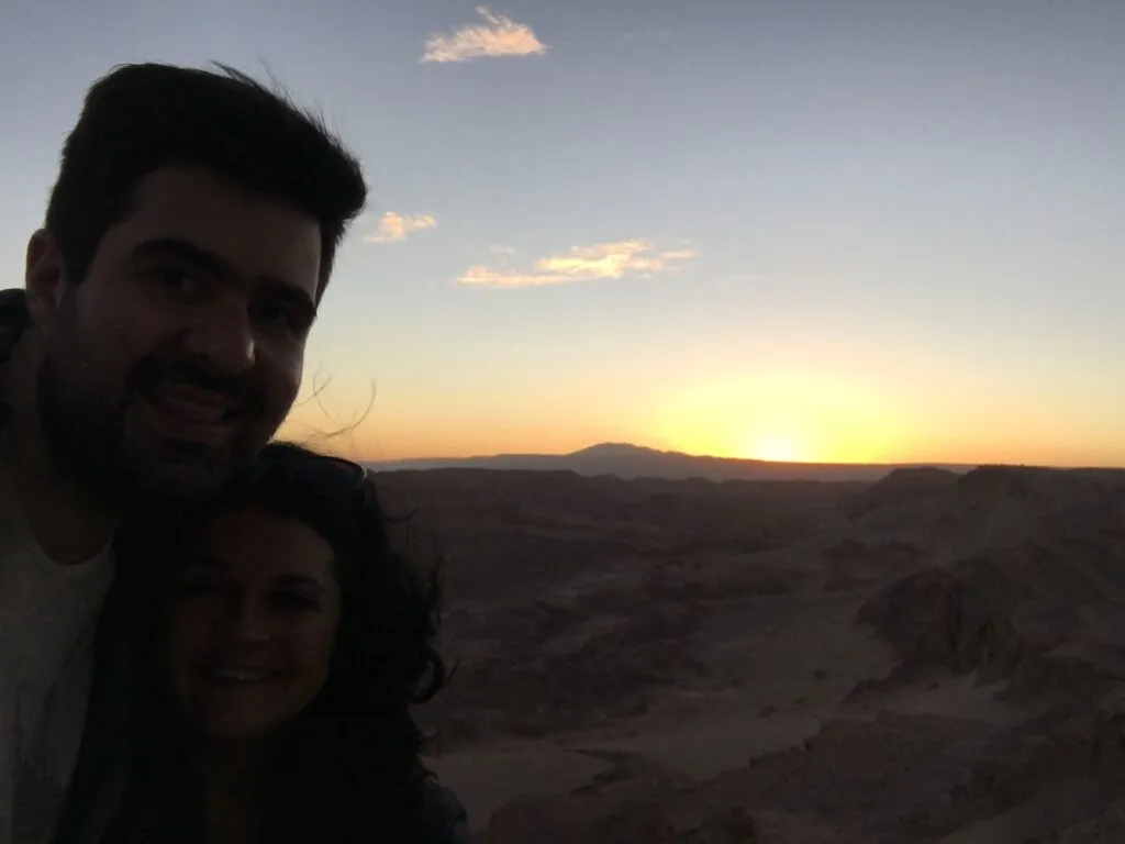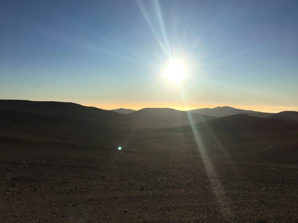 Finalmente chegamos em San Pedro de Atacama ao pôr do sol. Dirigimos direto para o Mirador Likan Antay , um ponto de observação que oferece uma vista panorâmica do Vale da Lua . O sol refletido nas formações rochosas, fizeram desse momento o fechamento perfeito para a jornada .