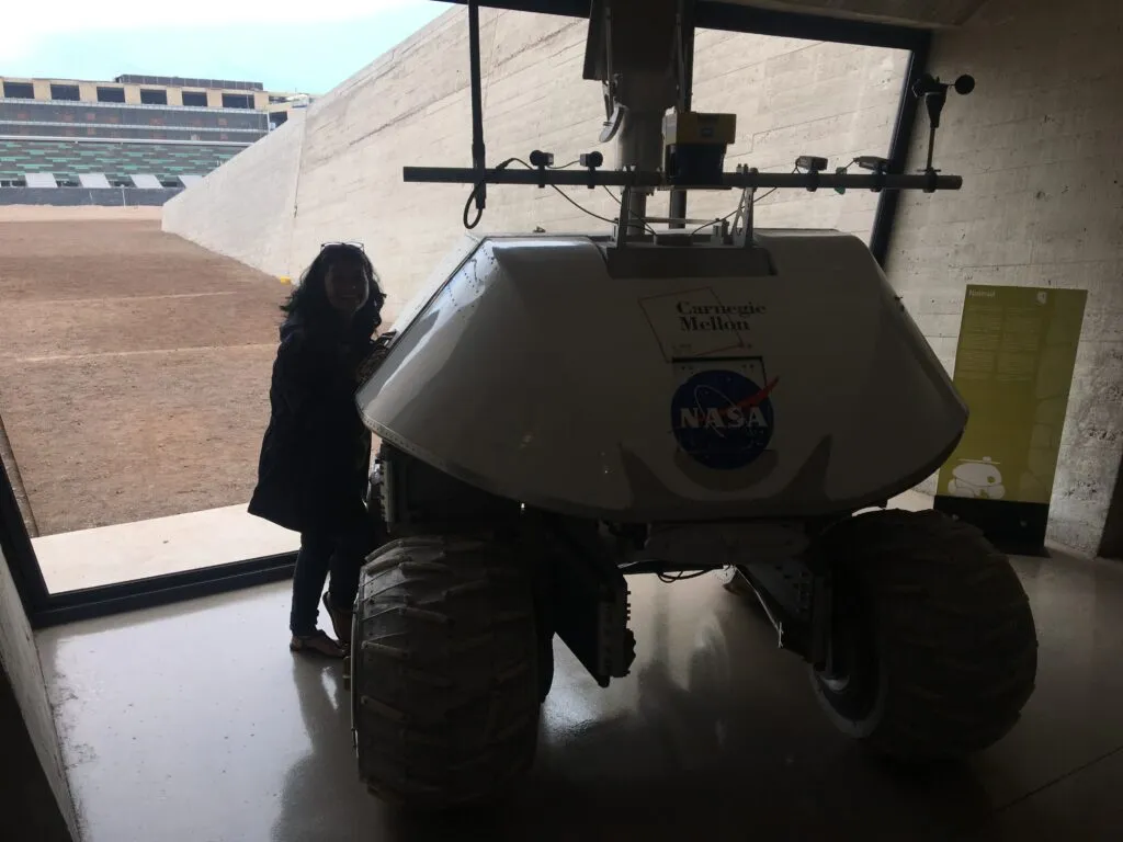 Fomos então ao Museu Ruinas de Huanchaca , um local histórico que preserva as ruínas de uma antiga fábrica de prata . No museu, vimos uma réplica do carrinho robô da NASA , que foi enviado para Marte , mas antes ele “treinou” no Deserto do Atacama devido à similaridade do terreno. Foi interessante descobrir que o Atacama contribuiu para a exploração espacial .